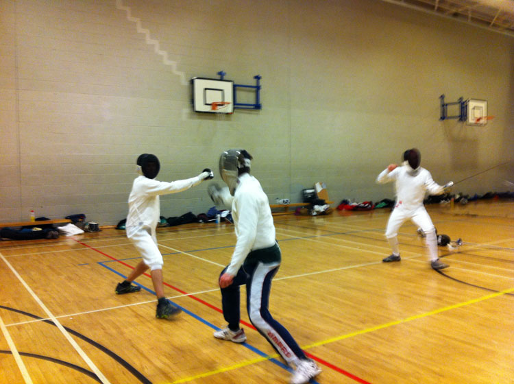 Three male sabreurs from the club also competed. Unfortunately Carl Morris and Brian Millo, having warmed up the week before at the Vets Winton, went out in their first DE, finishing 57th and 66th. But the highlight of the day was a virtuoso performance by Eryk Rose whose over-zealous follow-through laid his unfortunate opponent out on the deck during his first – and final – DE. Eryk finished 63rd and is now seeking to tone down his technique for his next competition.